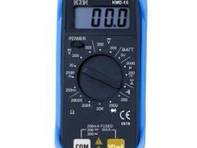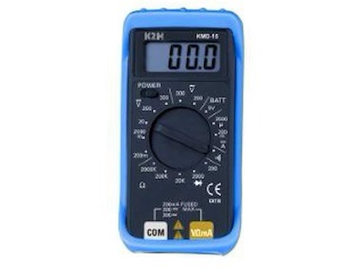 multimetro digitale con display retroilluminato, alimentato a batteria, misura tensione DC e AC, corrente DC, resistenza, test di diodo e di continuità
