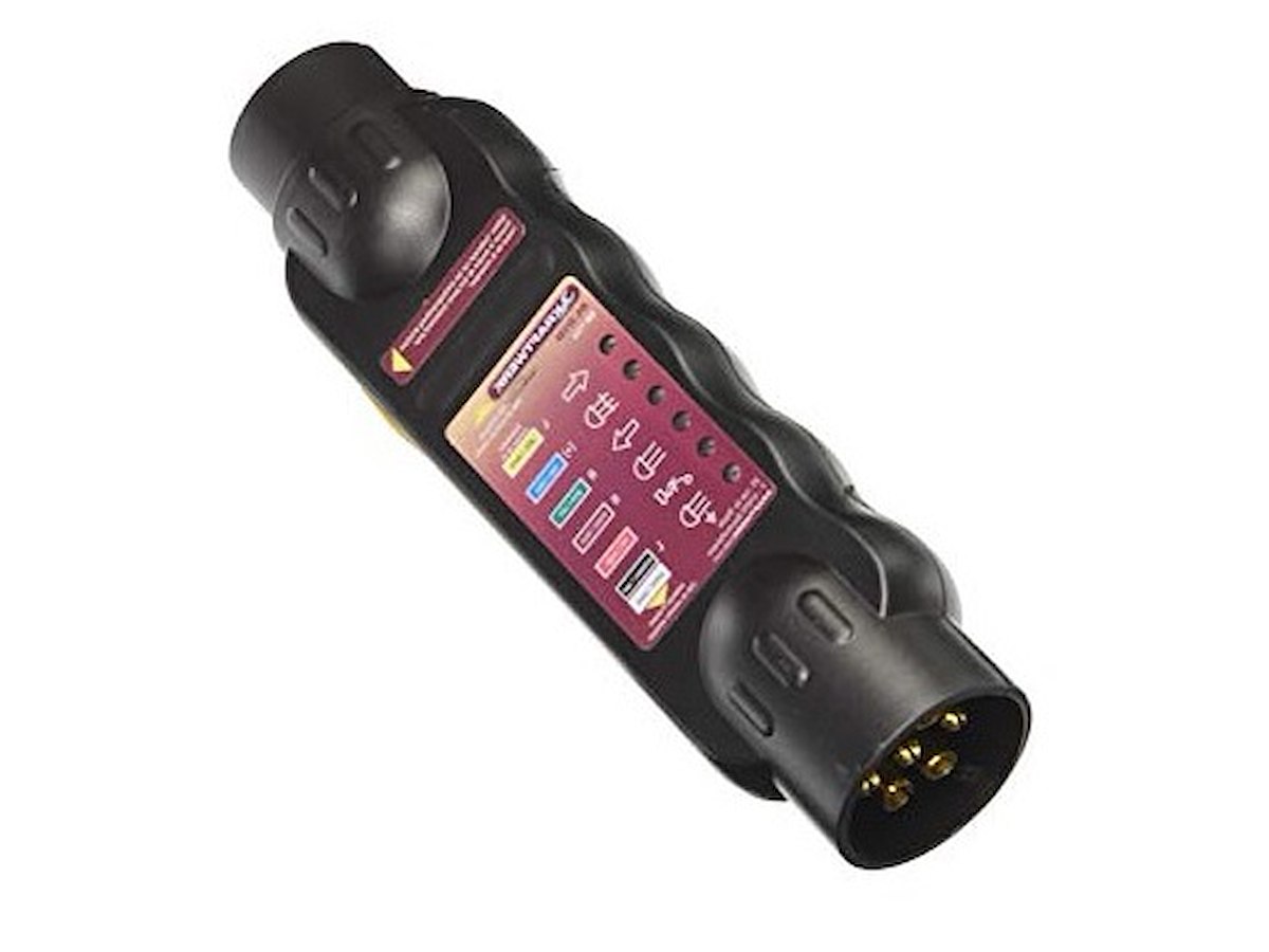 Tester per la ricerca rapida delle linee di collegamento difettose su rimorchi Per tutte le spine e prese a 7-13 poli Con indicazione LED del rispettivo colore del cavo difettoso