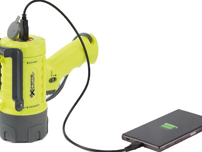 - provvista di presa USB piccola per ricarica e grande per poter usare la torcia come fonte di energia per ricarica cellulari; galleggiante.