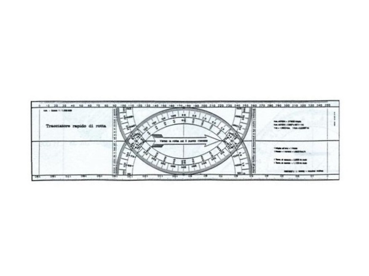 Questo strumento permette di tracciare rilevamenti e rotte in base alla gradazione delle bussole e di determinare le distanze, lunghezza mm. 385