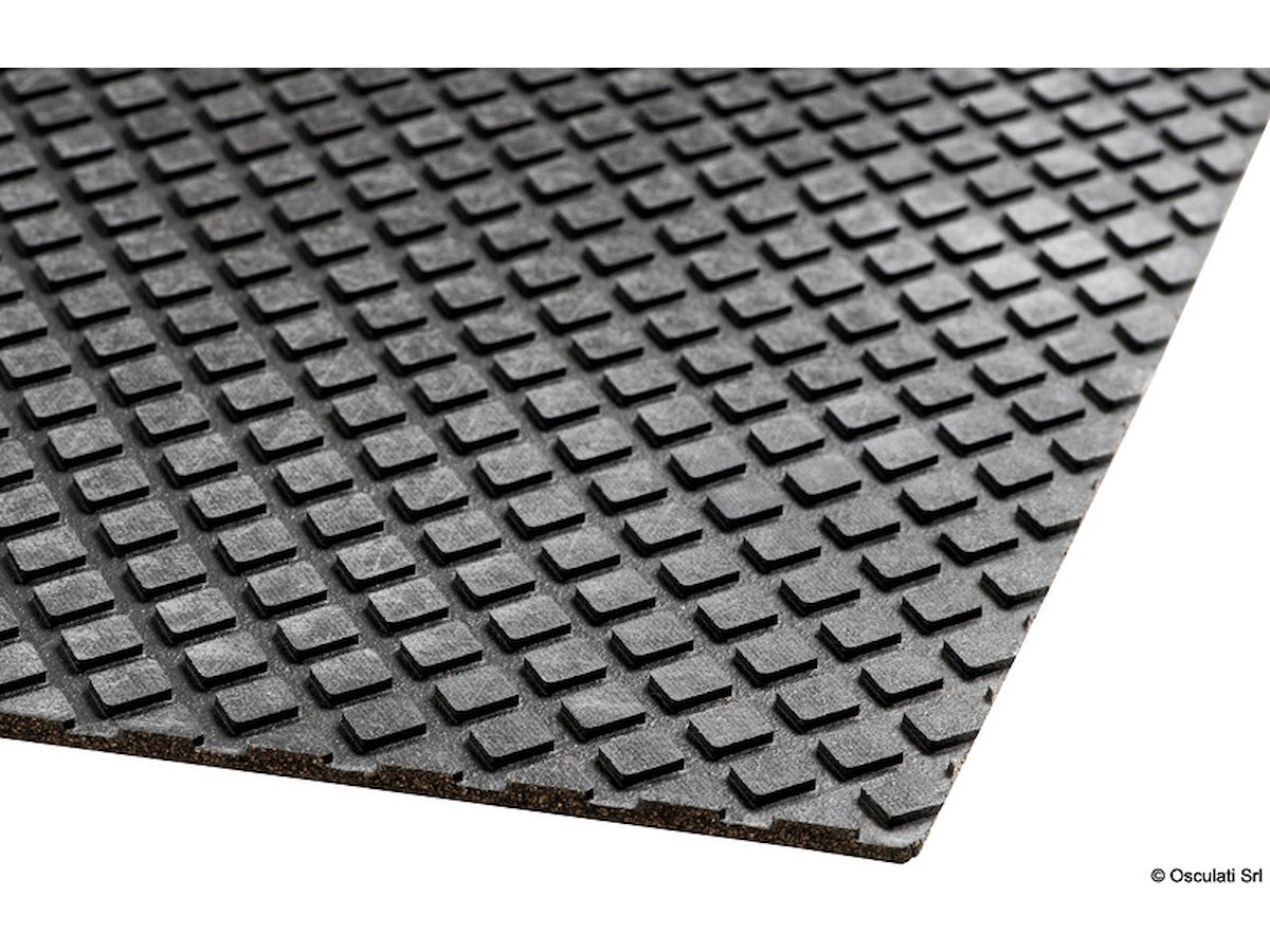 Rivestimento antisdrucciolo impermeabile appositamente realizzato per pavimentare locali motore. Resistente agli olii minerali. Rivestimento antisdrucciolo per coperte, pozzetti, di produzione inglese in conglomerato gomma-sughero.