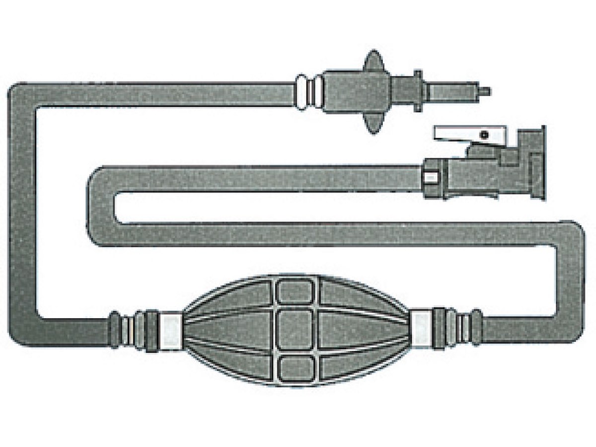 Fabbricato con speciale tubo coestruso con interposta calza in poliestere. Sezione 8x13 mm, resistente fino a 15 bar. Completa di pompetta tipo maggiorato, adatta per benzina verde.