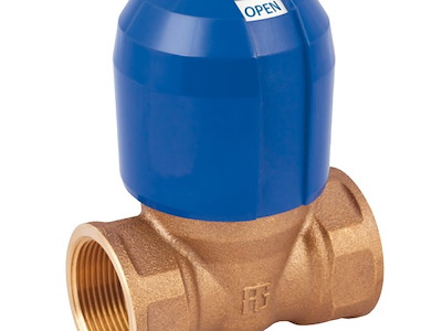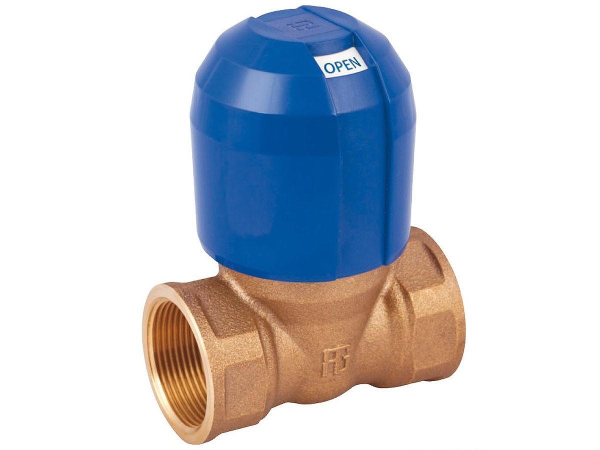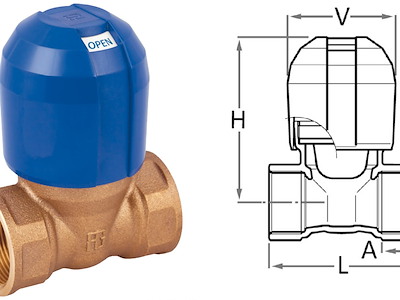 speciale valvola antiblocco concorpo in bronzo modello Alex (Guidi raccorderie) a passaggio totale PN16, meccanismo di chiusura rivestito in neoprene e isolato, volantino con indicazione open-closed