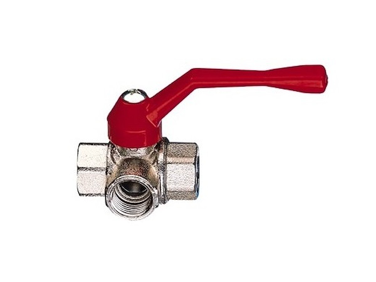 valvola deviatrice tipo a ''L'' a tre vie passaggio totale F-F-F PN16, realizzata in ottone nichelato