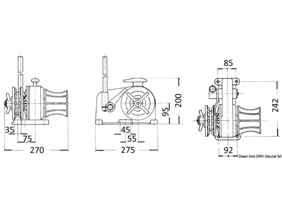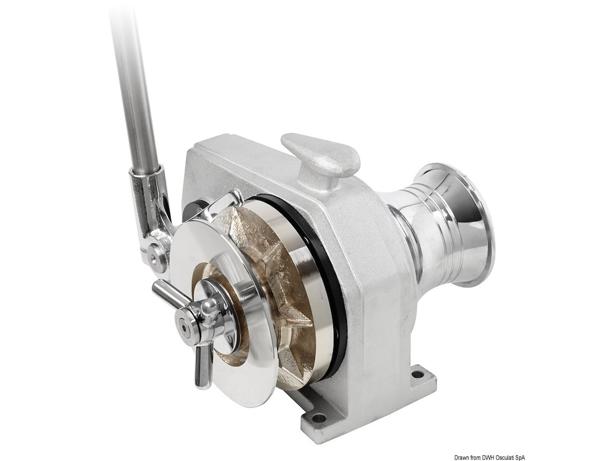 Carcassa in alluminio anodizzato . Barbotin bronzo cromato. Barbotin Ø catena mm: 6 Carico di lavoro kg: 300 peso : 10,2