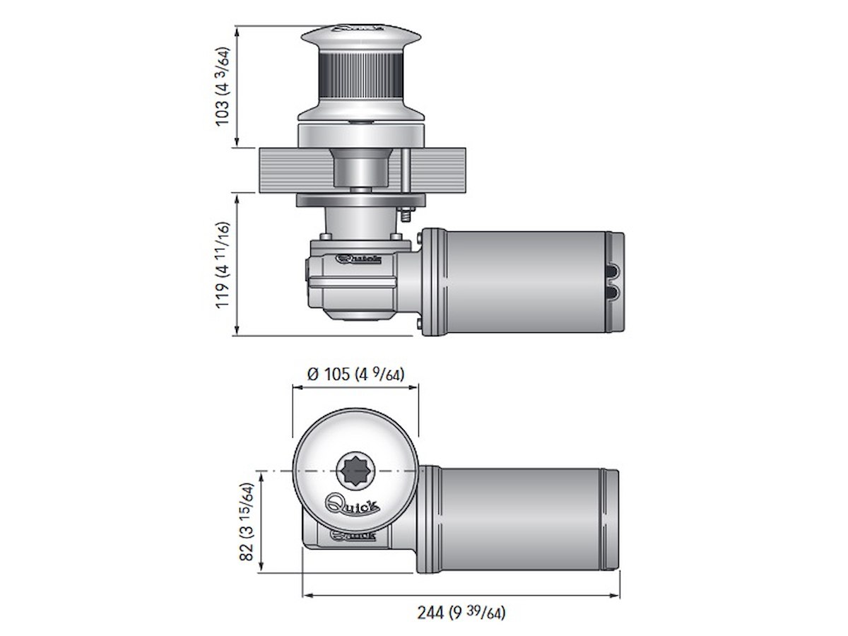 Verricello da tonneggio 500W base e campana (Ø105 mm) in acciaio inox Aisi 316 motore stagno IP66 riduttore in alluminio anodizzato, completo di maniglia e cassetta teleruttori