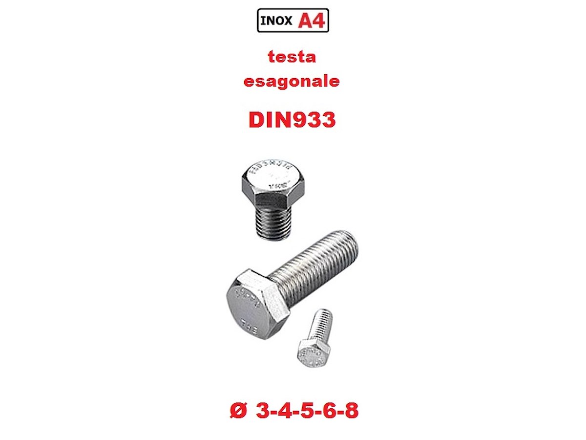 acciaio inossidabile A4, riferimento DIN933 UNI5739 ISO4017