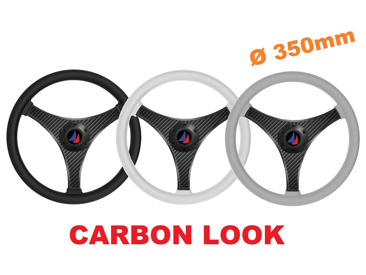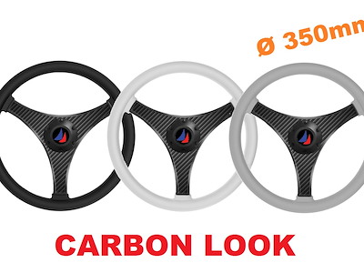volante a 3 razze effetto carbonio, con impugnatura megol effetto pelle, Ø 350 mm, conforme alle norme UNI EN, mozzo con attacco universale