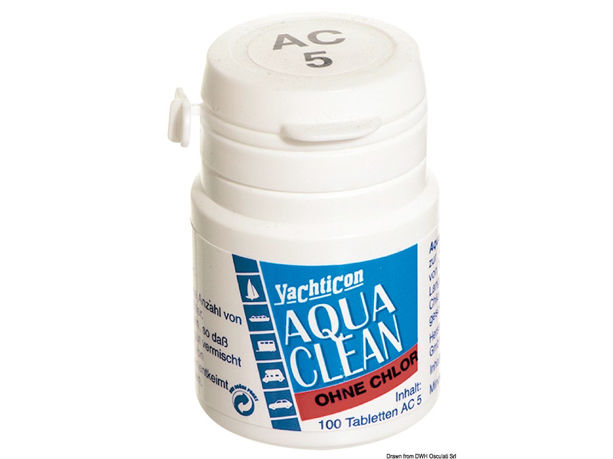 Utilizzato per il trattamento e la conservazione dell’acqua dolce nei serbatoi, ne previene la contaminazione fino a sei mesi.