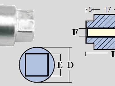 dimensioni: L=33,D=22,E=14,F=M6 rif.ti: ME557-01146