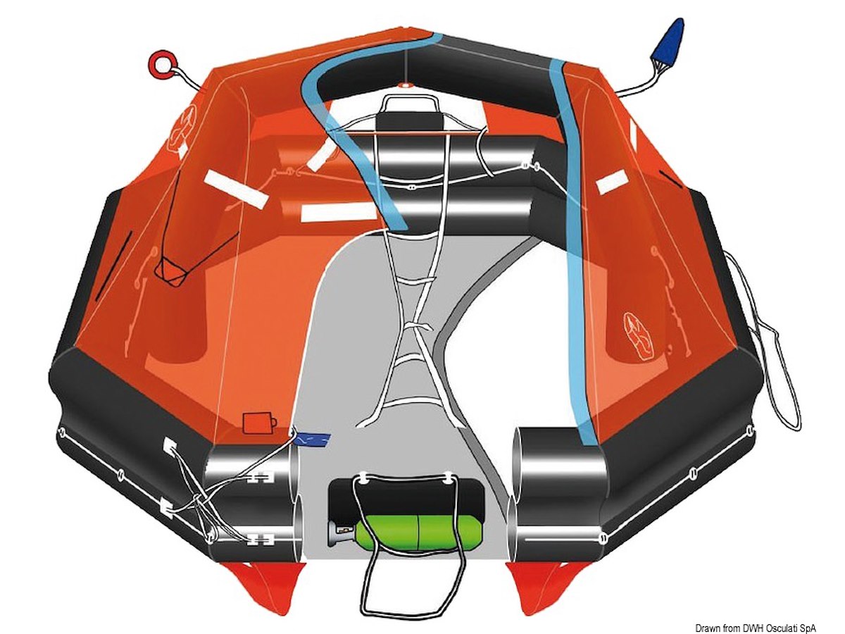Conforme alla Solas MED, ultracompatta e di estetica molto curata. Progettata per mega-yacht oltre 24 m. Può in ogni caso essere installata su qualsiasi imbarcazione purchè l'altezza di caduta non superi i 18 m.
